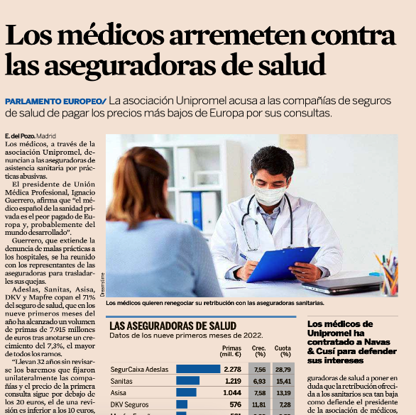 Noticia publicada originalmente en Expansión. Link a noticia completa La asociación médica Unipromel acusa a las entidades de pagar los precios más...